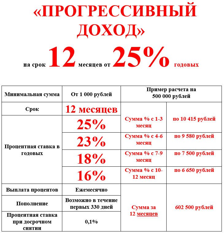 НОВЫЕ УСЛОВИЯ ПО ПРОГРАММЕ «ПРОГРЕССИВНЫЙ»